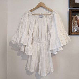 C/MEO pearl white romper shorts with bell ruffle sleeves M