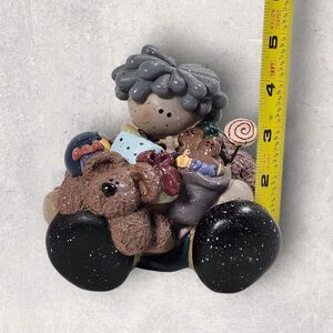 Add a sweet, nostalgic touch to your space with this charming figurine from CMI/Henton. Featuring a wide eyed child surrounded by a teddy bear, gingerbread cookies, lollipops, and toys, this hand-painted piece is perfect for retro collectors, cottagecore lovers, and anyone drawn to cozy, whimsical decor.