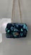 Elevate your style with this stunning sequin shoulder bag. Featuring a black and aqua blue sequin design, this bag is perfect for any occasion. The gold chain adds a touch of elegance. See pics and video. See measurements. In good condition.