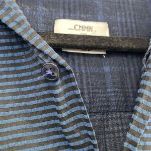 CMMN SWDN Blue Plaid Short Sleeve Shirt Collared Cotton Pullover Lightweight