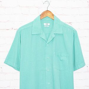 CMMN SWDN Men's Short Sleeve Button up Camp Shirt Turquoise Size 50