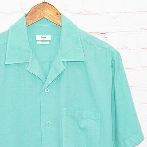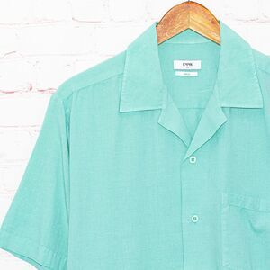 CMMN SWDN Short Sleeve Button up Camp Shirt Turquoise Size 50