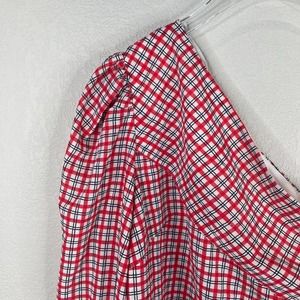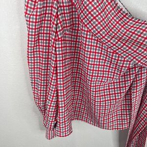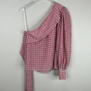 C/Meo Collective Counting All Top Med 6 Red Multi One Shoulder Plaid Tie Waist