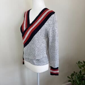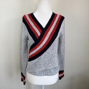C/Meo Collective Crossover Knit Wrap Sweater XXS Grey Striped Preppy Academia