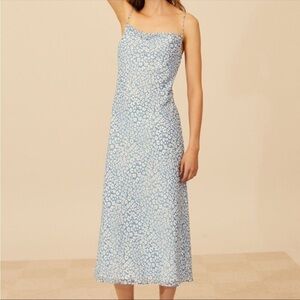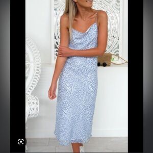 Beautiful light blue and white print midi dress from C/MEO Collective. Fun floral print with spaghetti straps and loose neckline. Silky soft, flirty and airy! Like new!