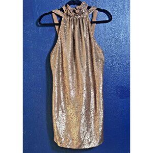 C/Meo Collective Sequence dress halter copper rose gold S Resolve ILLUMINATED
