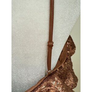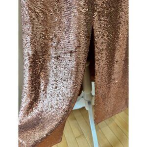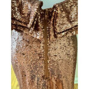 C/Meo Collective Womens Rose Gold Sequin Midi Dress With Ruffle Cold Shoulder De