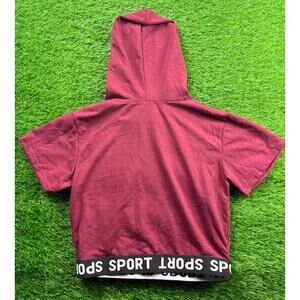 C-Mode Women’s Crop Hoodie Top L Burgundy Short Sleeve Sport Hem NWT Activewear