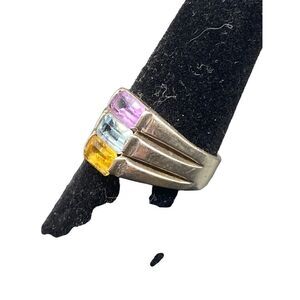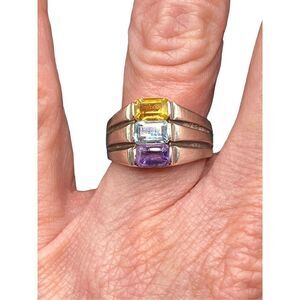 CN Sterling silver 925 stacked amethyst, blue topaz and citrine ring size 7