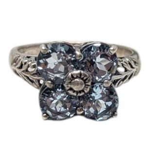 CNA Sterling Silver (.925) Blue Quartz Floral Cluster Ring Size 9, 4.79g Estate