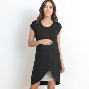 Black/Grey Round Neck Color Block Asymmetrical Wrap Modal Nursing Tunic