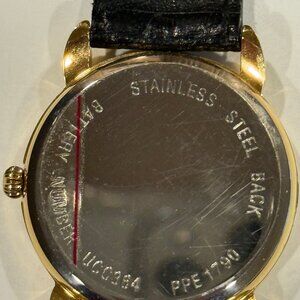 Unworn gold tone CNN quartz watch with date complication and original leather strap.