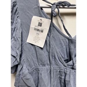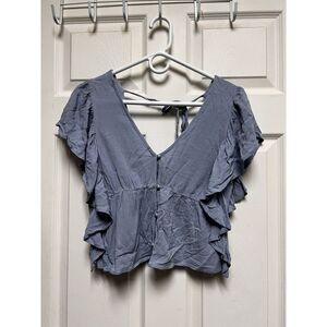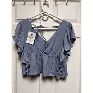 CNV) NWT Altar'd State XS Blouse Top Ruffle Blue Short Sleeve Peplum V Back New