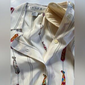 C.NV.RS.T..N 100% Silk Button up Long Sleeve Shirt SizeP/S Neckties Figure Beige