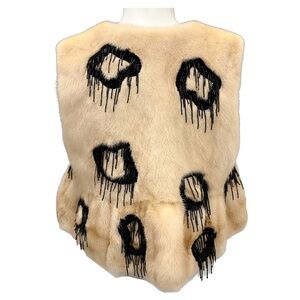 Co Blonde / Black Bead Embellished Mink Fur Short Vest