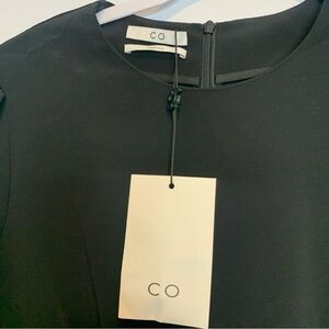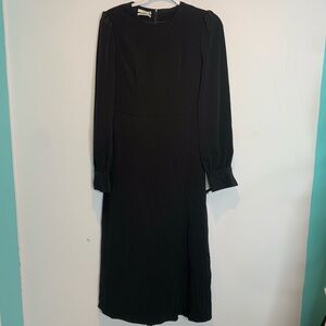 CO Essentials Pleated Panel Black Midi Dress Puff Sleeves “Tifa” Stretch