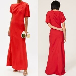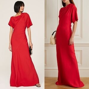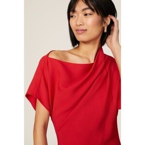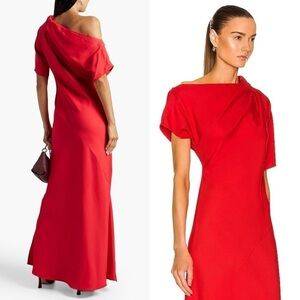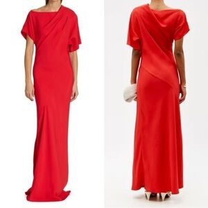 CO One Shoulder Asymmetrical Drape Short Sleeve Bias Cut Ribbed Cady Maxi Gown M