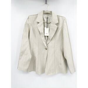 CO Pintuck Fitted Single-Breasted Blazer Jacket in Silver Taupe Size L NWT