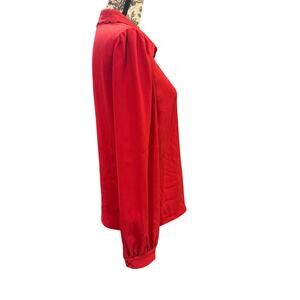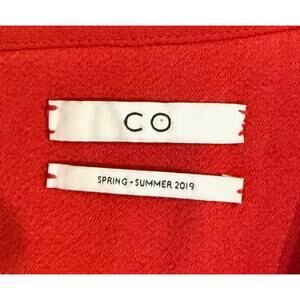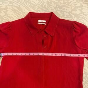 Elevate your wardrobe with this timeless red blouse from minimalist luxury label CO. From the SS19 collection, it features a delicate scalloped collar, covered button placket, and puffed shoulder detail. Made from a fluid, lightweight crepe with refined drape—perfect for both work and occasion dressing.