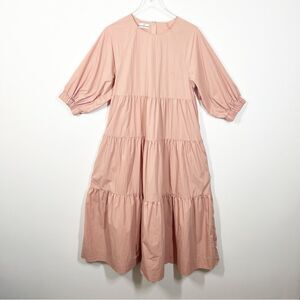 CO Women’s Size Large Dusty Pink Crew Neck Bubble Sleeve Tiered Maxi Dress