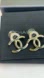 COA CHANEL 2023 Goldplated pierced earrings with Rhinestone details in unused condition with box and earring holder. 6 Rhinestones arch above the double CC 3/4” logo in each earring. This stylish set is over 1” high and wide each earring. A stunning authenticated pair of earrings, marked B23 K. Box and earring holder have also been authenticated.