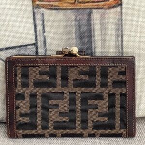 ⭐️COA⭐️ FENDI Vintage ZUCCA FF Kiss-Lock bifold Wallet⚡️Beautiful Condition⚡️