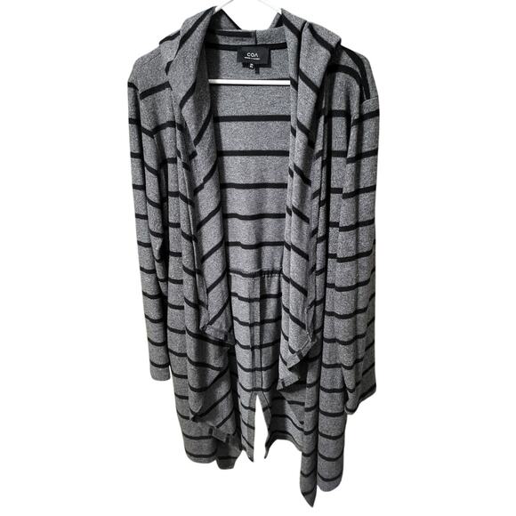 COA Gray and Black Striped Open Front Cardigan/Jacket with Hood - XL