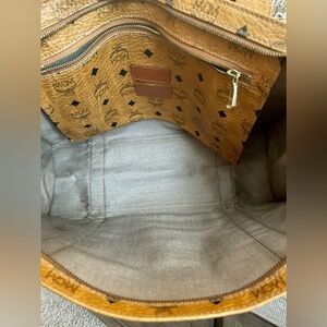 MCM VISETOS Vintage Shopper Tote in Beautiful Cognac coated canvas. This everyday bag is a must have in your wardrobe. The monogrammed coated VISETOS canvas exterior is coupled with double top leather handles, a top zip closure, an open pocket in the front with a shiny gold metal MCM plaque. Lined with a very clean textile fabric, the interior features a zipped pocket with a wide space to fit all your essentials, made in Germany tag ..Luv’nly used 💯Authentic (see pix for measurements)