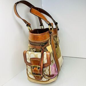 COACH #10002 Gold & Patchwork Leather Trim Tote / Shoulder Bag