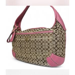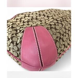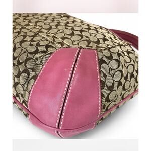 COACH 10772 Hand Bag Shoulder Bag Pink Signature Brown Canvas Leather HOBO Y2K