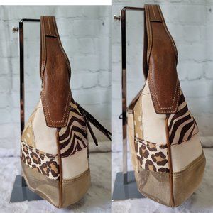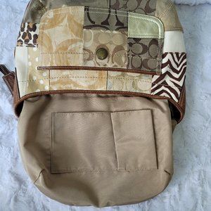 COACH 10808 Ergo Patchwork Leather Canvas Suede Hobo in Earth Tone Brown Color