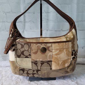 (4B-048) Coach Ergo Patchwork Leather Canvas Suede Hobo in Earth Tone Brown Color