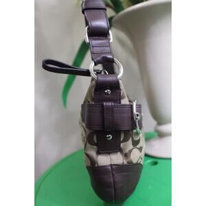 BRAND COACH CLOSURE ZIPPED MATERIAL JACQUARD/LEATHER HARDWARE SILVER COLOR BROWN INTERIOR 2 POCKETS, 1 ZIPPED DEMINSION STRAP:9"