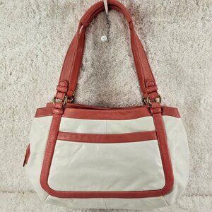 COACH 13601 Cricket Chalk Coral Leather Double Handle Satchel Shoulder Bag