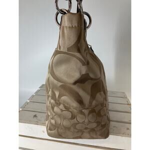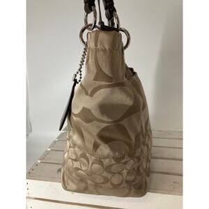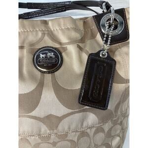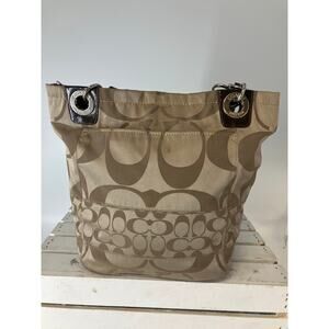 COACH 14449 LARGE TAN, BROWN SIGNAUTE PRINT SHOULDER BAG