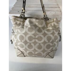 COACH 14578 LARGE IVORY, TAN SIGNATURE PRINT SHOULDER BAG