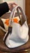 Call outs: Light discoloration on the corners and very light wear. There is a red mark on the interior of the smaller bag. All is shown in the photos.