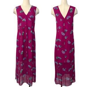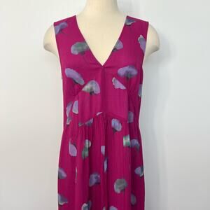 COACH 1941 Sleeveless V-Neck Silk Floral Midi Dress in Magenta | Size: 6 NWT