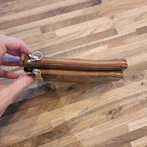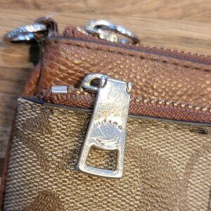 COACH 2 Compartment Brown Signature Logo Zippered Wristlet/Purse