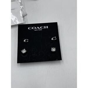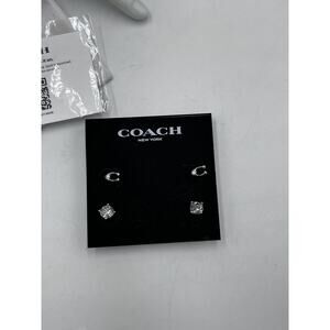 COACH 2 Pair Set Signature C and Crystal Stud Earring Set New With Pouch Pair Set