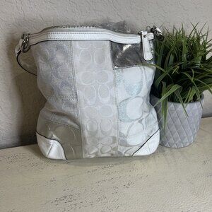 COACH (2008) GRAY WHITE Silver Patchwork Shoulder Hobo BAG 13496