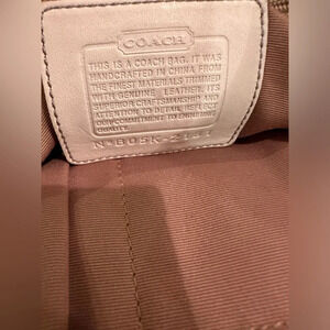 COACH 2181 Limited Ed. Metallic Silver Slim Tote Canvas Bag Yellow Patent Trim. Call outs: black smudge on back patent trim. Needs a bit of cleaning on canvas