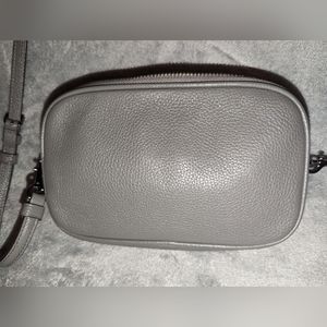 COACH 22868 Prairie Rivet Double Zip Suede Crossbody Clutch HEATHER GREY EUC