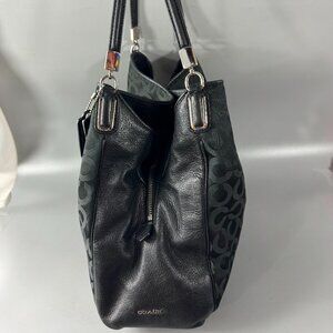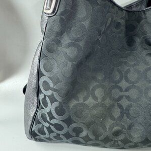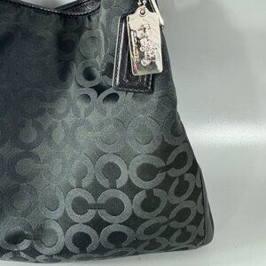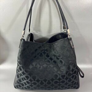 Coach # 25637 Signature Op Art Sateen Phoebe Shoulder Handbag Purse Black