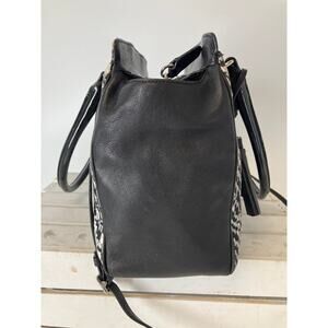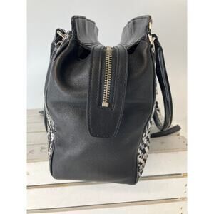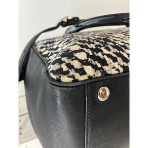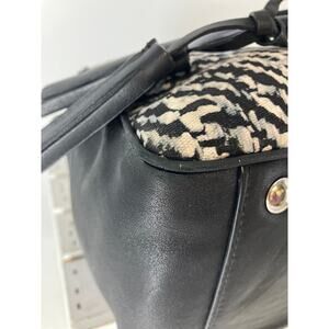 COACH 25811 BLACK, WHITE PRINT CANVAS, LEATHER SHOULDER BAG