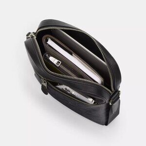 COACH 2PC Leather Houston Flight Bag Black Gunmetal & Zip Card Case NWT