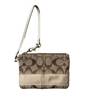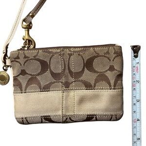 COACH 40028 Legacy Stripe Khaki & Champagne Tan Signature & Leather Wristlet