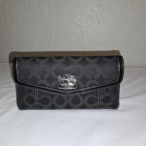 COACH Madison Black Op Art Signature Flap Clutch Wallet No Checkbook Cover