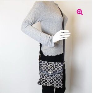 Stylish and versatile, this black and cream patterned shoulder bag is perfect for any occasion. Its elegant design adds a touch of sophistication to your outfit.