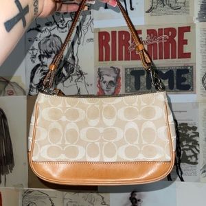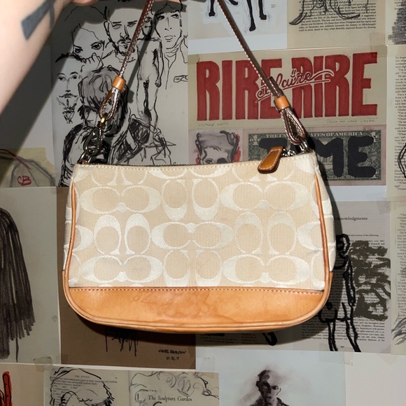 Cream Coach demi in great condition. This demi is such a beautiful neutral color and combines with everything! Perfect for every season and such a statement piece. There’s some small water damage in the leather (see second pic) but nothing too crazy. Such a Y2K bag that you definitely need in your collection. #coach #coachdemi #purse #bag #y2k